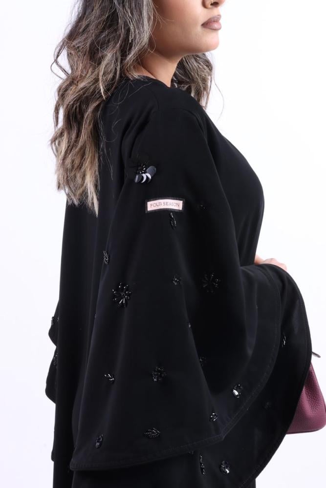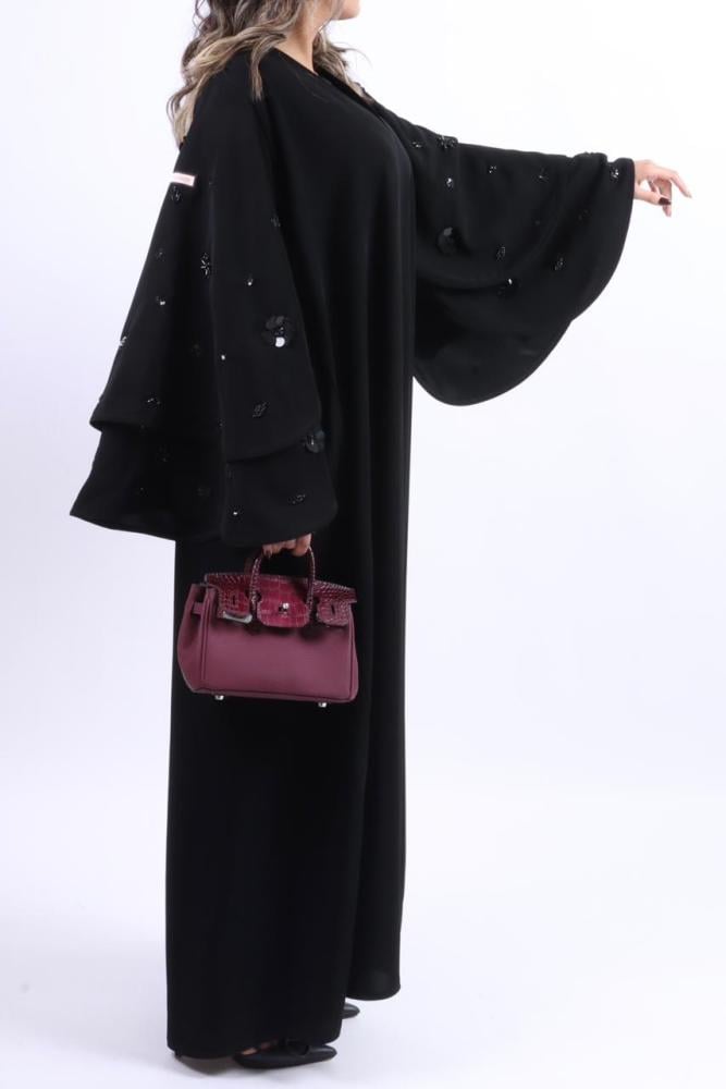 موديل العباية شك ورد اسود على الاكمام